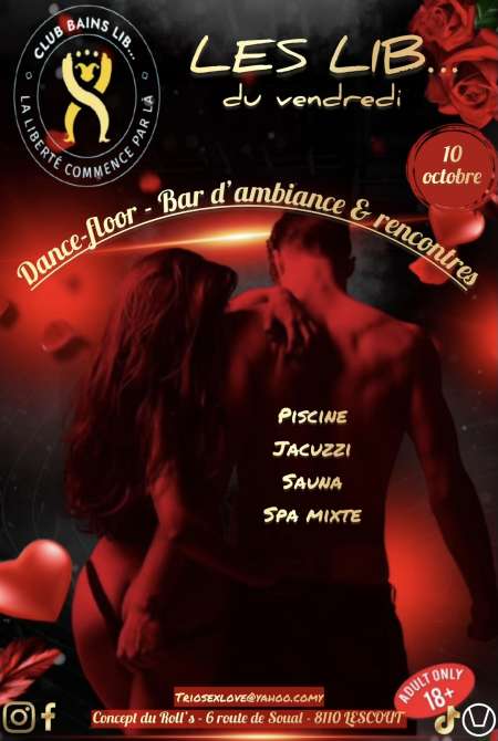 les vendredis soirée Libertine dans un lieu insolite sans vis à vis lieu discret avec Bar cocktails piscine jacuzzi sauna Spa-piscine chauffé belle clientèle de couples nombreuses femmes seules et les jeunes messieurs sont les bienvenus